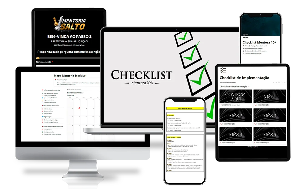 Tudo o que eu precisei fazer foi implementar um checklist de ações práticas para que os alunos pudessem colocar em prática mês a mês ou a cada encontro. Depende do programa de mentoria que você vai criar.